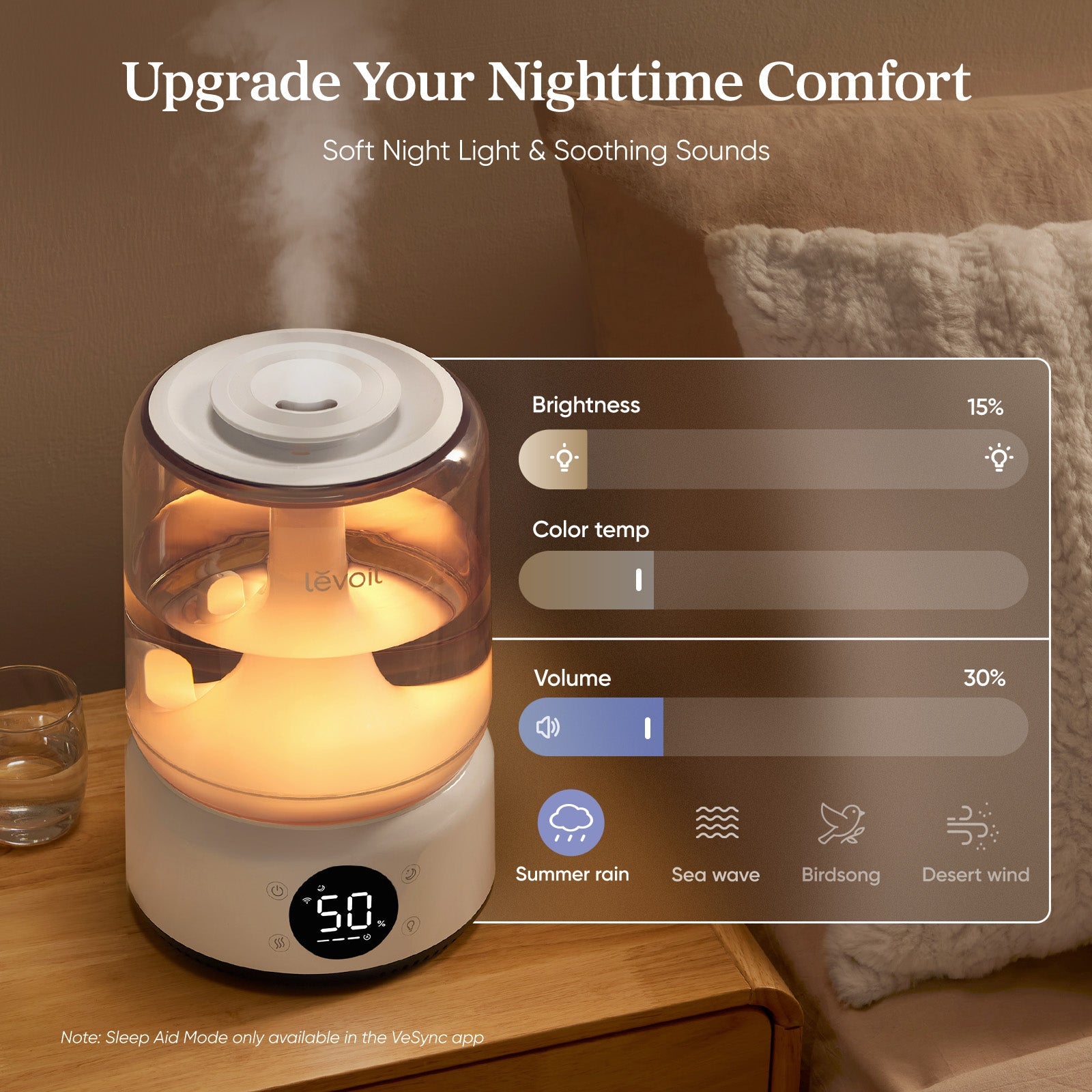 - Smart Control: App & voice control via VeSync, Alexa, and Google Assistant