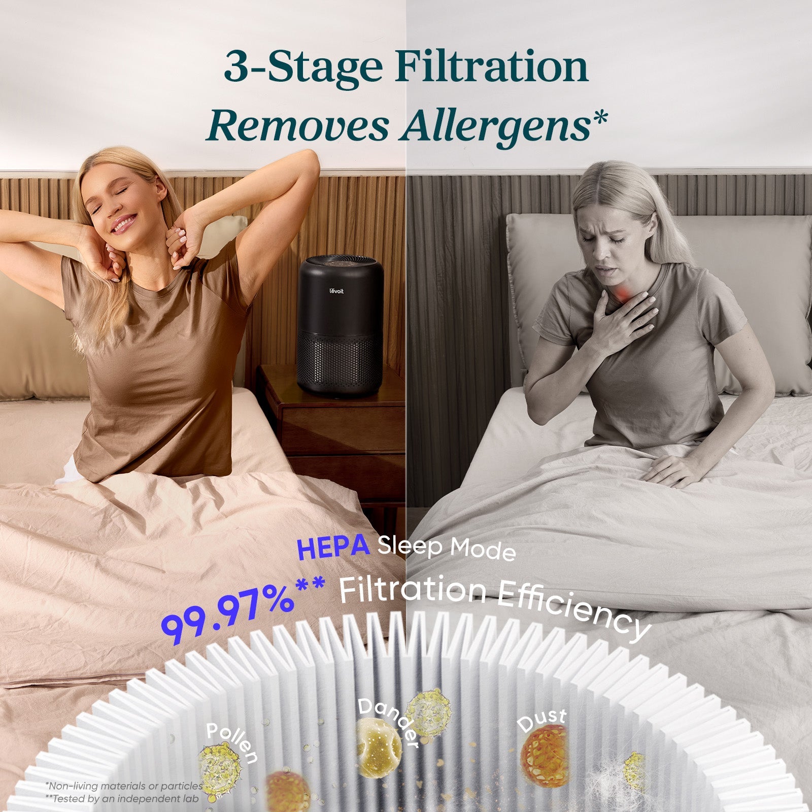 Fill your environment with fresh, clean air using Levoit’s Core® 300-P Air Purifier. Its patented VortexAir Technology spreads fresh air to every corner of your room, while its effective 3-stage filtration system captures particles such as fine dust, smoke particles, pollen, and pet dander.