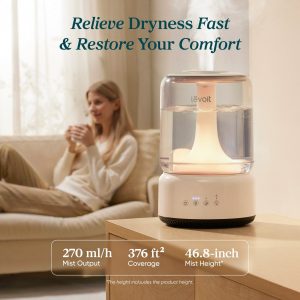 - Powerful Coverage: 270 mL/h output, 376 ft² coverage, 46.8″ mist height